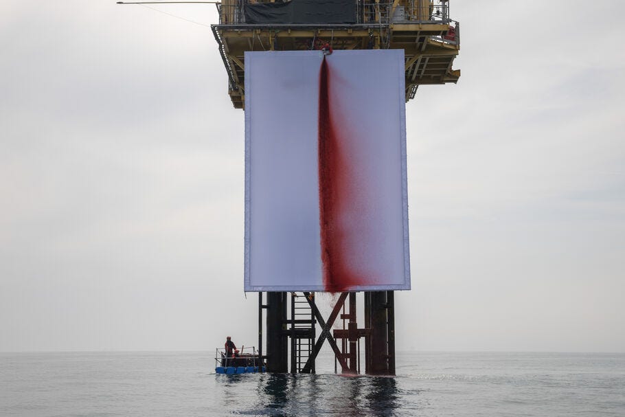 Artă și activism: pânza sângerândă din Marea Nordului denunță schimbările climatice.