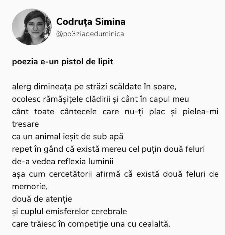 Fragment dintr-o poezie scrisă de Codruța Simina, publicată de Poezia de duminică.